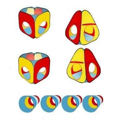 CORT 8 in 1 - acest cort mare si spatios este format din 8 elemente. Are 4 corturi de diferite forme si 4 tuneluri care le unesc. Dimensiunea cortului permite mai multor copii sa stea in el in acelasi timp sau sa aseze in el un numar mare de mingi, jucarii sau perne, ceea ce asigura confort in timpul jocului. Va fi perfect atat acasa, cat si in aer liber.