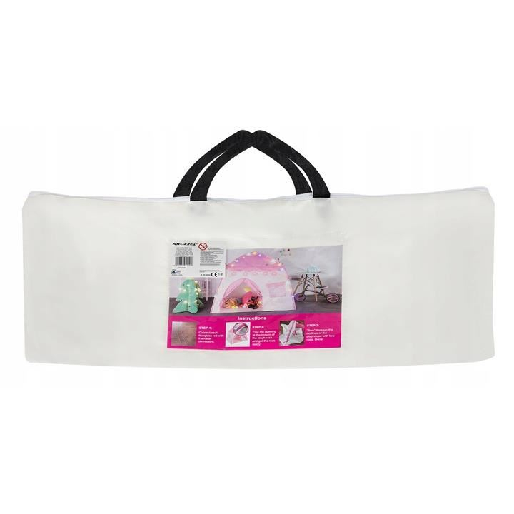 LAMPI - cortul vine cu lampi tip „bulgari de bumbac” alimentate cu 2 x baterii AA (nu sunt incluse), acest lucru va permite sa le folositi in exteriorul si in interiorul cortului, deoarece nu este nevoie sa cautati un loc cu curent electric. Culoarea lampilor este roz si alb.