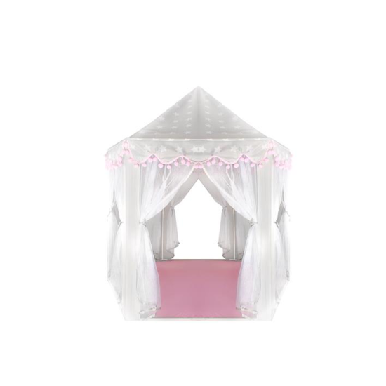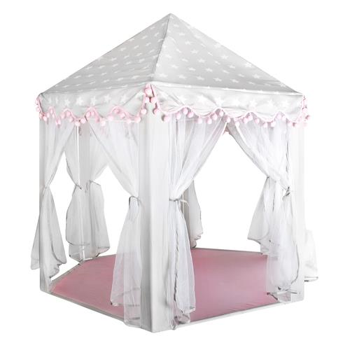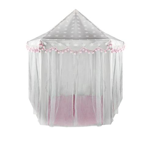DESIGN SPECIAL - combinatia de roz si gri cu motiv de stea, volanele pompoase frumoase, fac cortul atractiv pentru privitori. Cortul are 6 intrari si un acoperis conic. Intregul arata fantastic si se va potrivi perfect in orice camera.