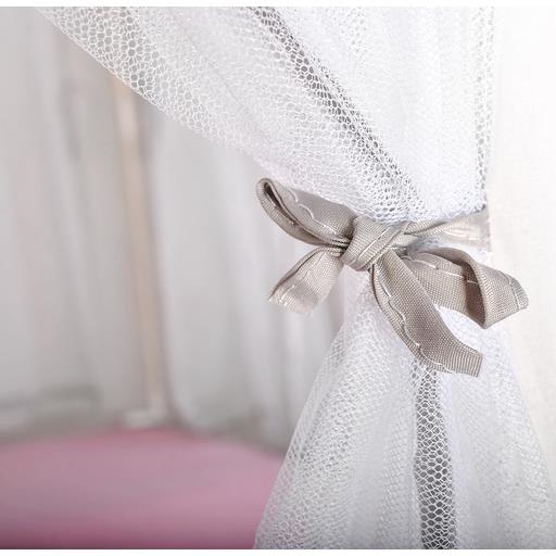 PERDELE - intrarile sunt acoperite cu perdele translucide, usoare, care se imbina perfect cu restul cortului; perdeaua poate fi legata cu panglici decorative; solutia folosita cu funde adauga farmec si diversifica distractia.