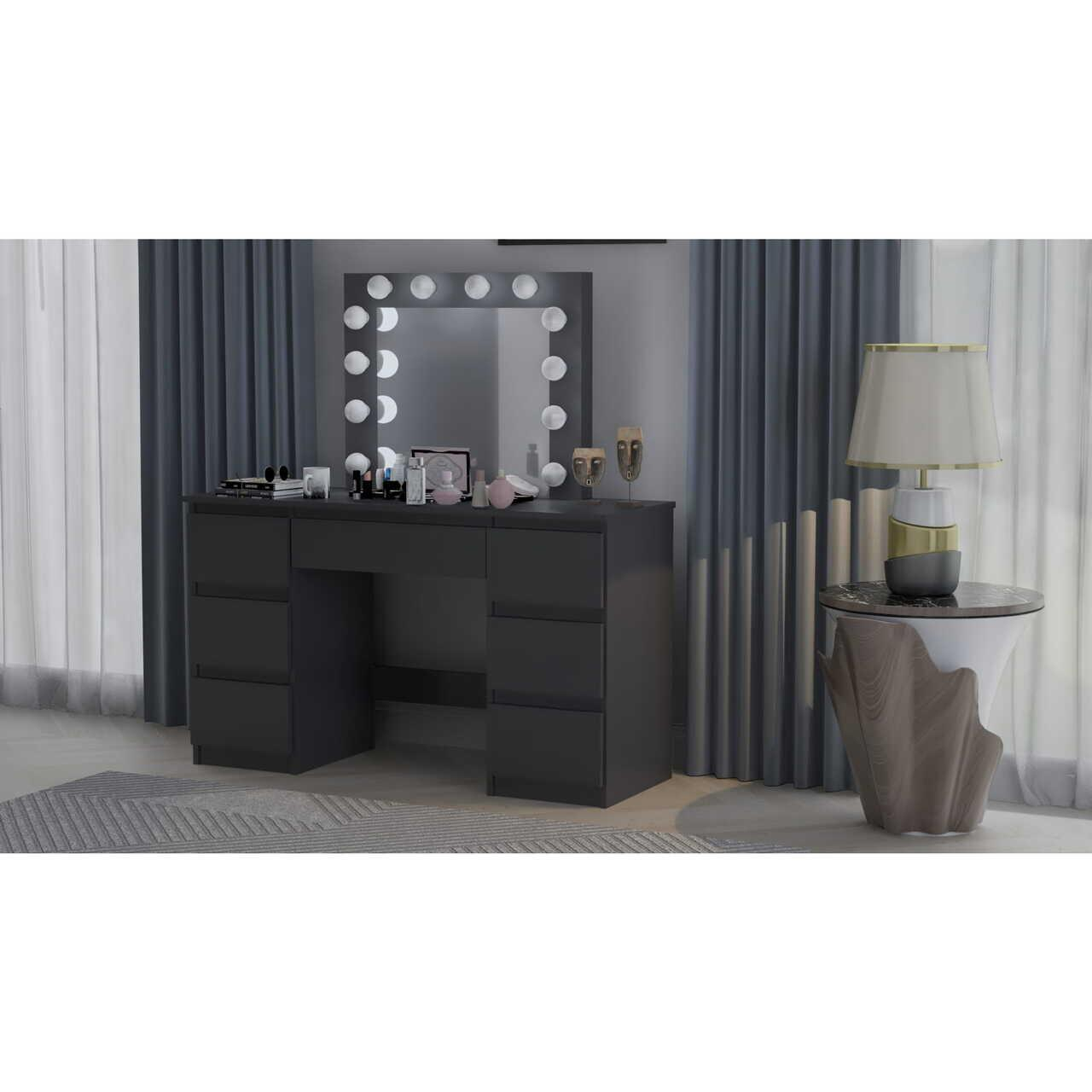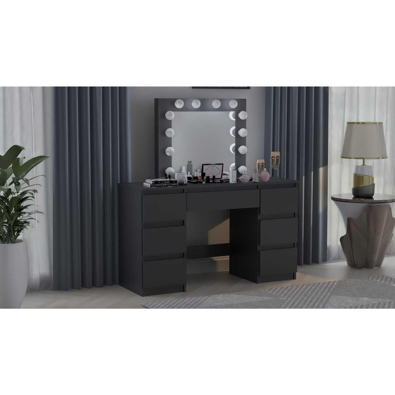 Cele 7 sertare cu care este dotat mobilierul va ofera un spatiu cu adevarat ofertant pentru toate accesoriile de care aveti nevoie la indemana, cosmetice, instrumente de igiena, etc.