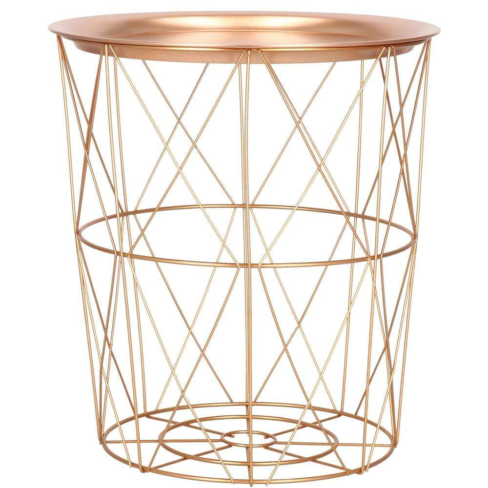 MASA ROTUNDA CU COS DEPOZITARE, METALICA, AURIU ROZ, 30.5/40X45 CM, LOFT, SPRINGOS
