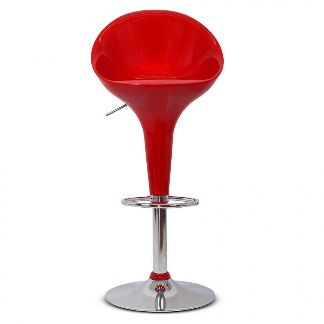 Modelul se incadreaza perfect in categoria de scaune de bar, ce sunt rotative si reglabile pe inaltime. Acest scaun de bar ABS 105 rosu are sezutul din plastic ABS (plastic dur), pe o rama metalica , baza suportul de picioare si pistonul pe gaz fiind realizate din otel cromat.