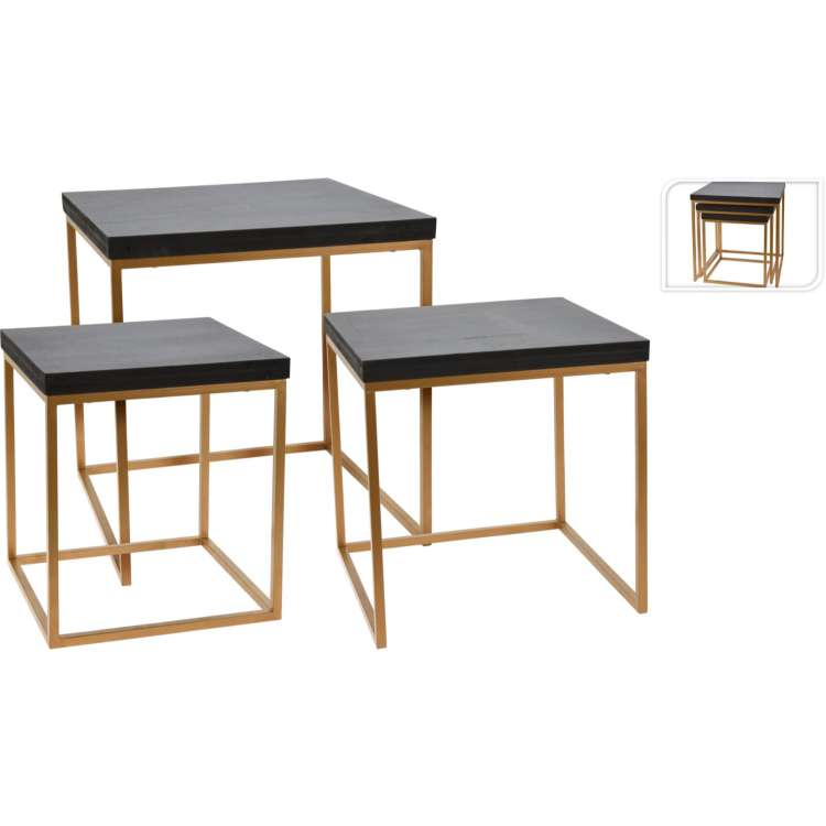 Set mese moderne cu cadru metalic auriu și blat negru – ideale pentru living sau birou. Design minimalist și elegant, potrivite pentru orice decor contemporan