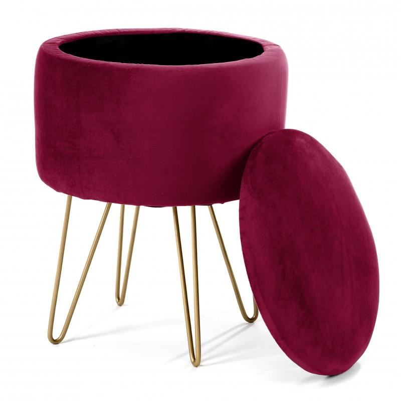 Un taburet sau un "puf" este un plus excelent pentru camera de zi sau dormitor. Datorita lui, va puteti odihni picioarele obosite dupa o zi intreaga de mers, iar cand puful este din velur moale, nu face decat sa sporeasca senzatiile placute de odihna. Un aspect modern cu picioare metalice vopsite in culoarea aurie sunt la moda indiferent de sezon. Capacul care se poate deschide ofera acces la recipientul in care punem obiectele utile in utilizarea de zi cu zi.
