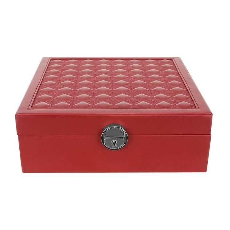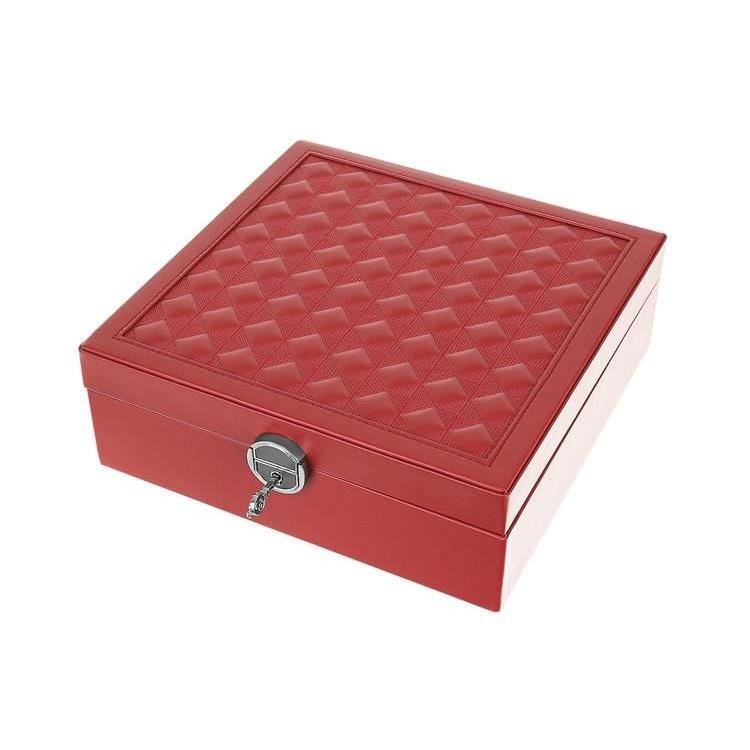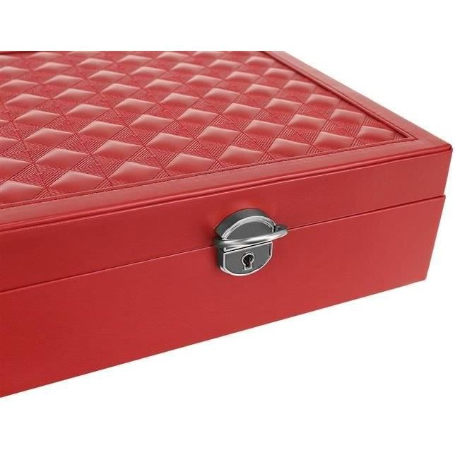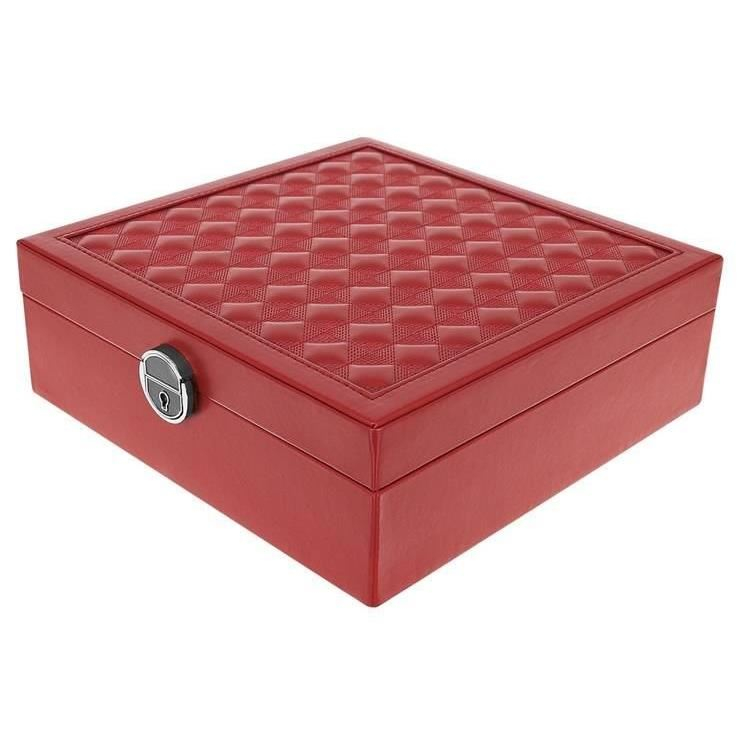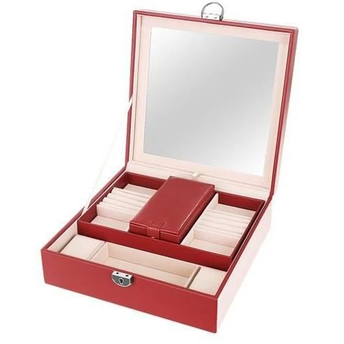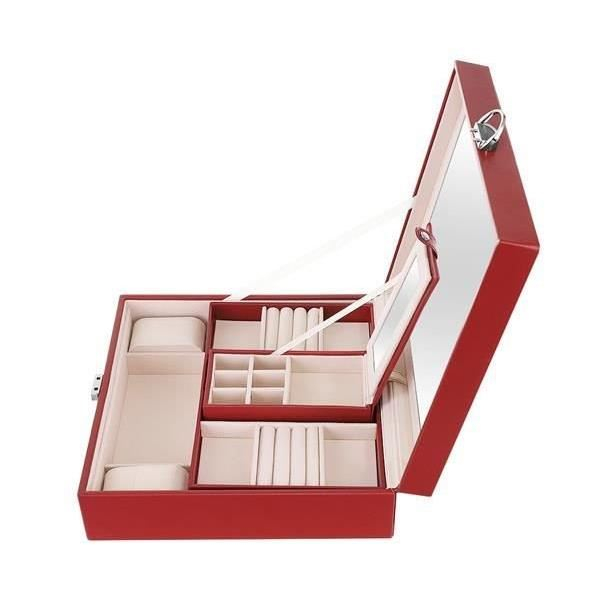 CAPACITATE MARE - cutia este formata dintr-o husa detasabila cu 2 compartimente cu role pentru inele, 4 compartimente pentru alte bijuterii, o caseta detasabila. Dedesubt exista 6 compartimente suplimentare, 2 insertii pentru ceasuri sau bratari si 1 compartiment mare, dreptunghiular, pentru articole mai mari. Compartimentele sunt captusite cu un material moale pentru a proteja bijuteriile delicate de zgarieturi.