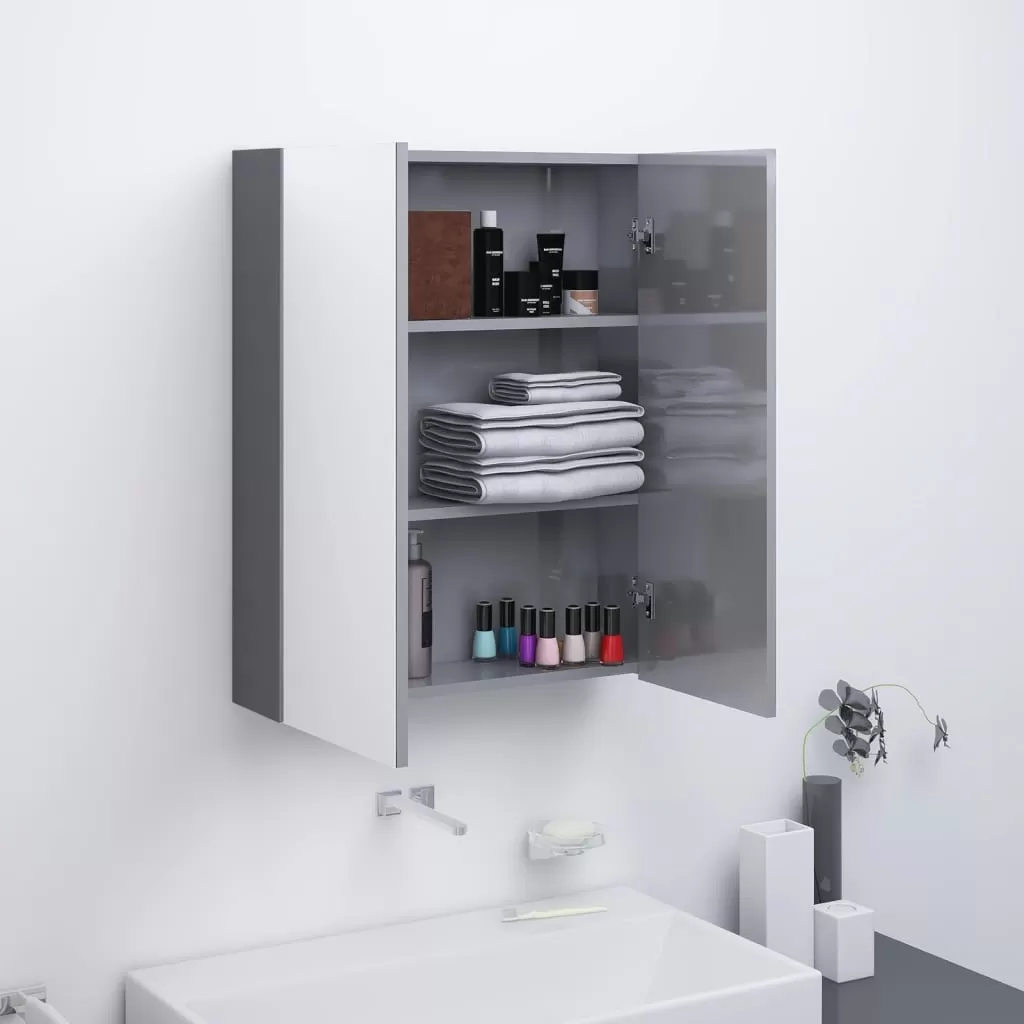 DULAP DE BAIE CU OGLINDA, CENUSIU STRĂLUCITOR