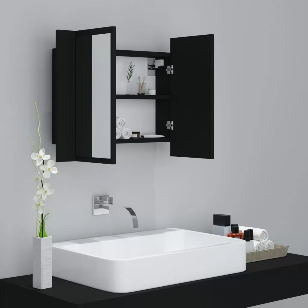 DULAP DE BAIE CU OGLINDA SI LED, NEGRU