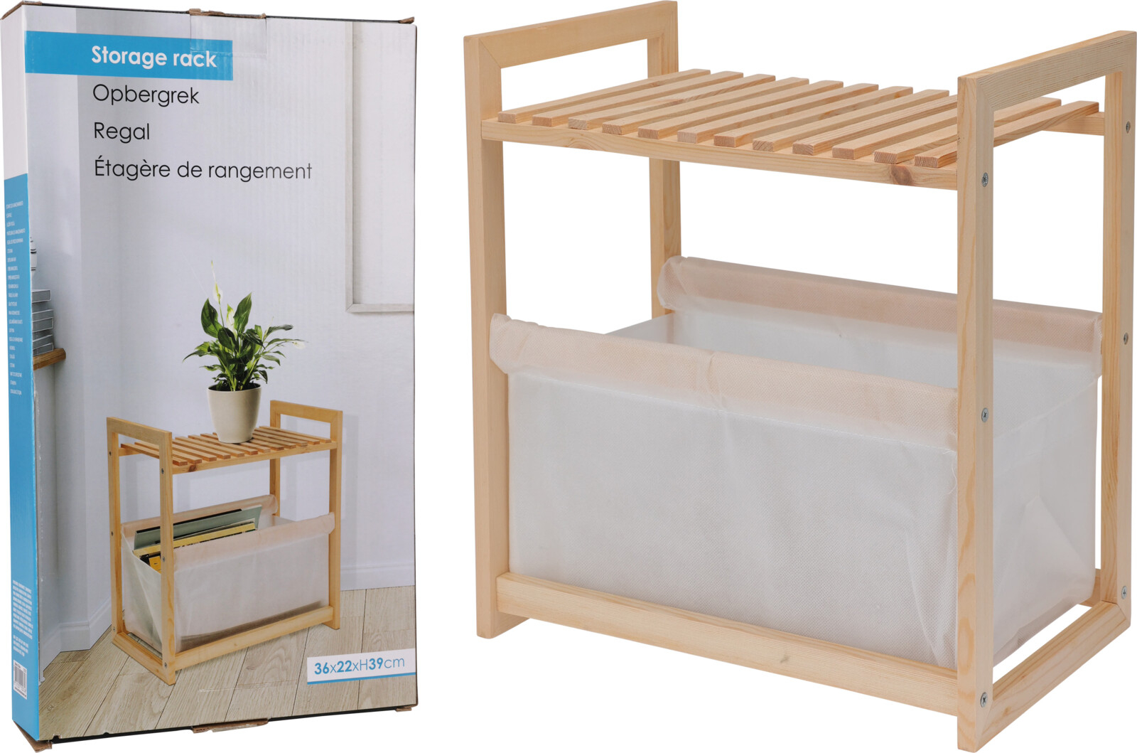 Raft de depozitare compact, cu structură din lemn natural și coș textil, ideal pentru organizarea cărților, revistelor, jucăriilor sau altor obiecte mici. Designul său minimalist și dimensiunile reduse îl fac perfect pentru spații mici precum livinguri, dormitoare sau birouri.