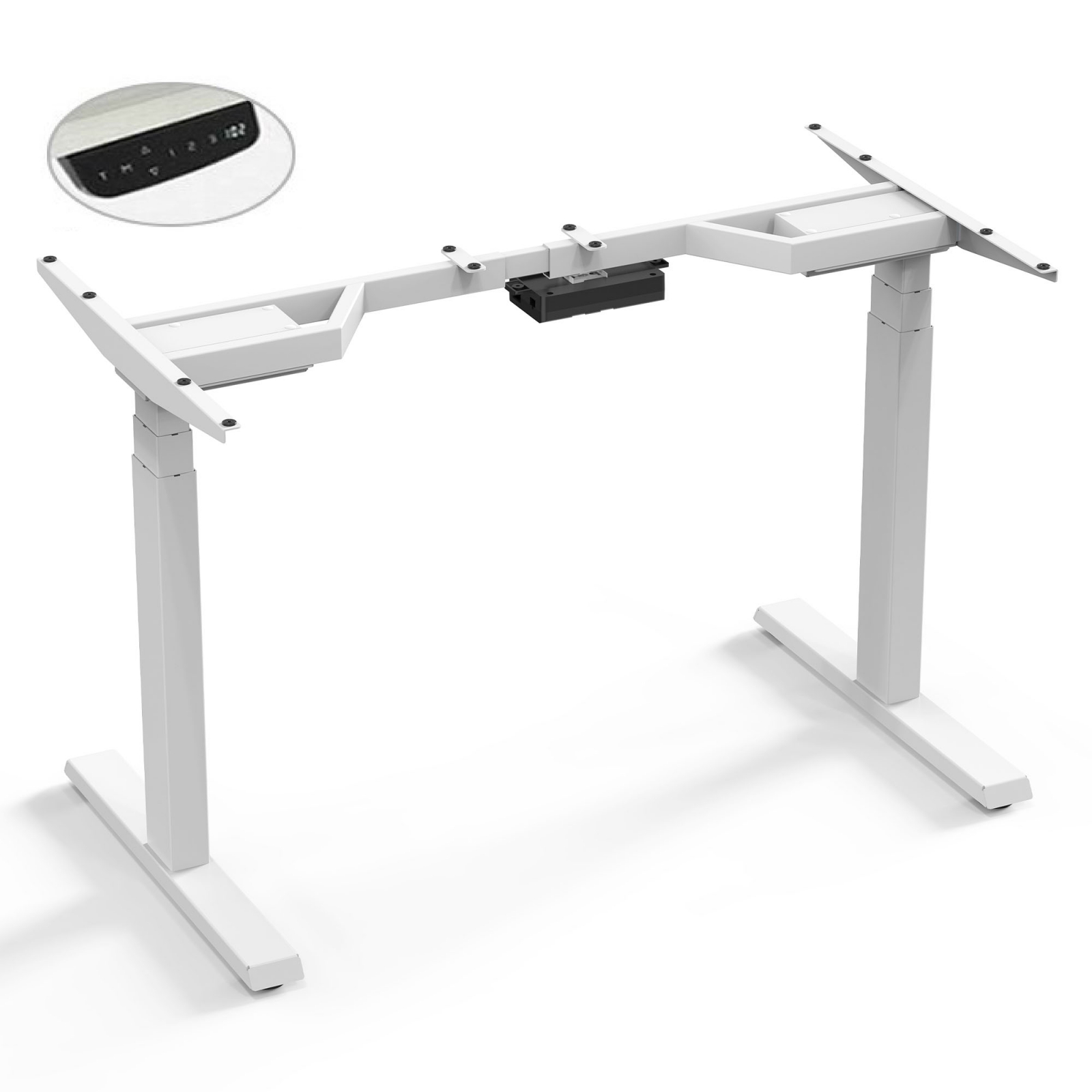 BIROU ERGONOMIC REGLABIL CU 2 MOTOARE, CADRU ALB, BLAT ALB PREMIUM 1380X670X25 MM