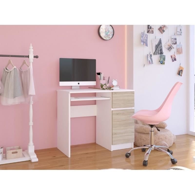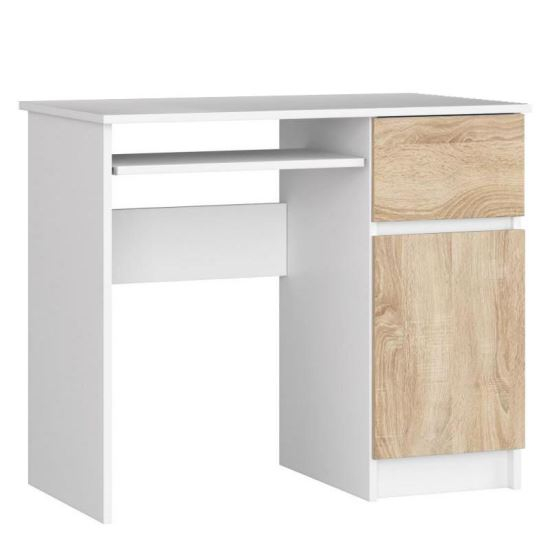 BIROU CALCULATOR, PLACA LAMINATA, 1 SERTAR, 3 RAFTURI, ALB SI STEJAR, 90X50X77 CM, PIXEL