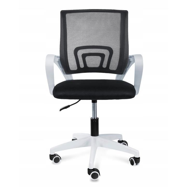 Un spatar perfect conturat in combinatie cu un sezut moale ofera un confort deosebit, iar o baza stabila cu cinci brate, cu roti mici din plastic, ofera o mare stabilitate si protejeaza suprafata impotriva zgarieturilor. Scaunul are o clapa care va permite sa reglati inaltimea scaunului in functie de nevoile necesare.