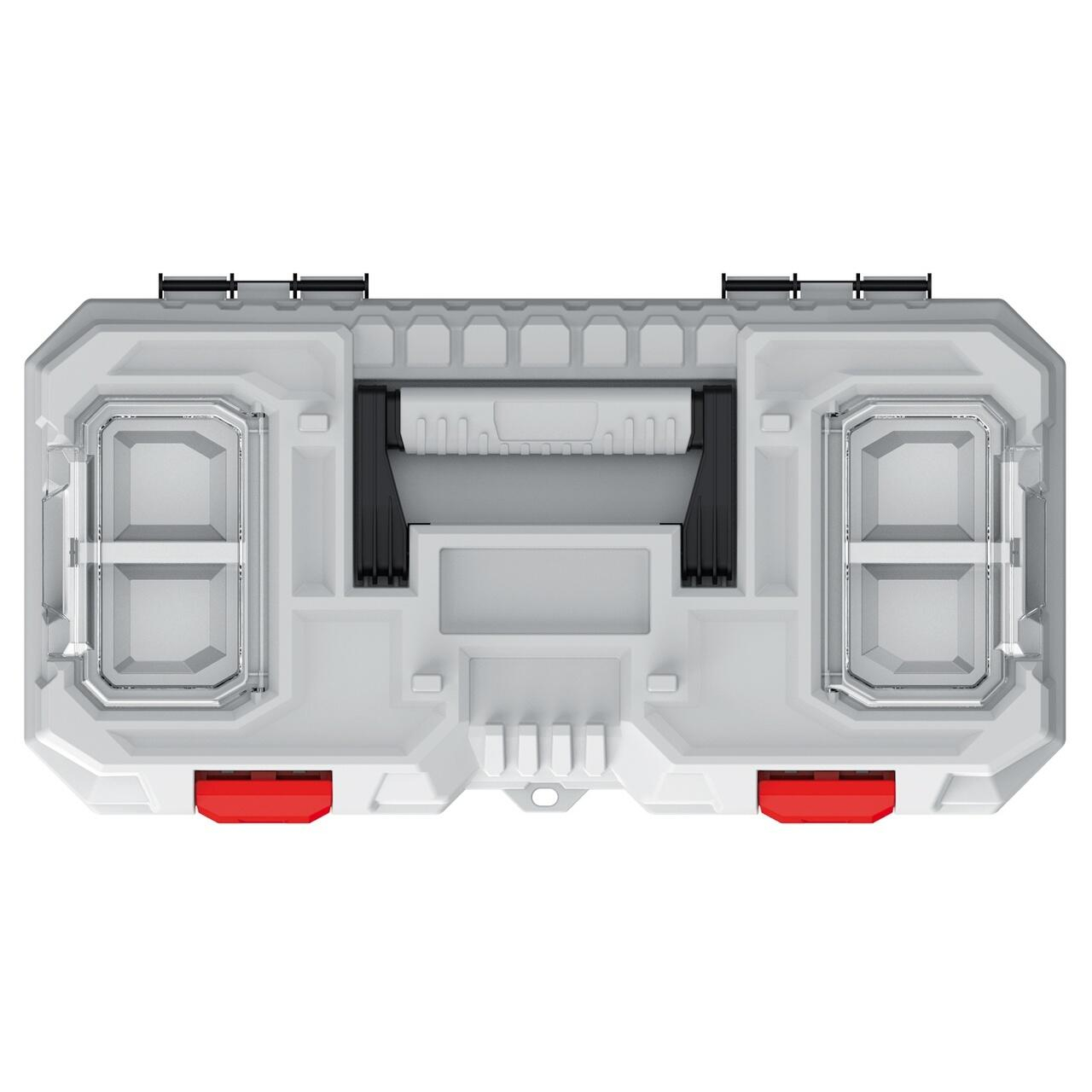 In interiorul capacului se afla un organizator transparent pentru accesoriile de mici dimensiuni (cuie, piulite, bituri, etc.).
