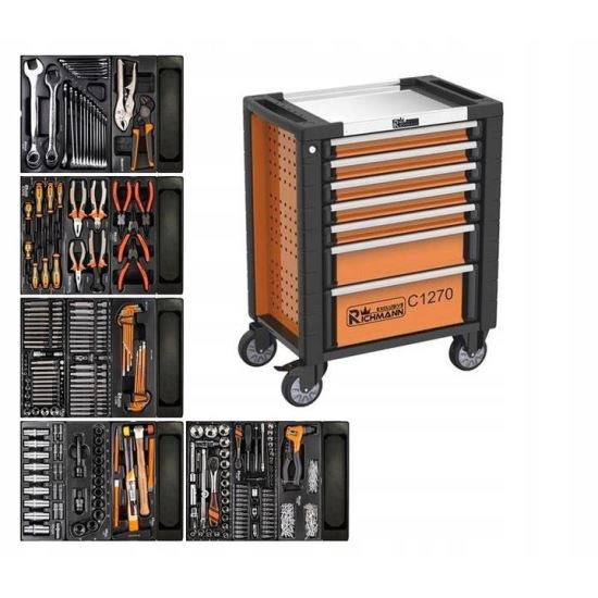 Dulap mobil pentru unelte, cu 7 sertare toate echipate cu o gama variata de de unelte, fabricate din materiale de inalta calitate, un set destinat profesionistilor.