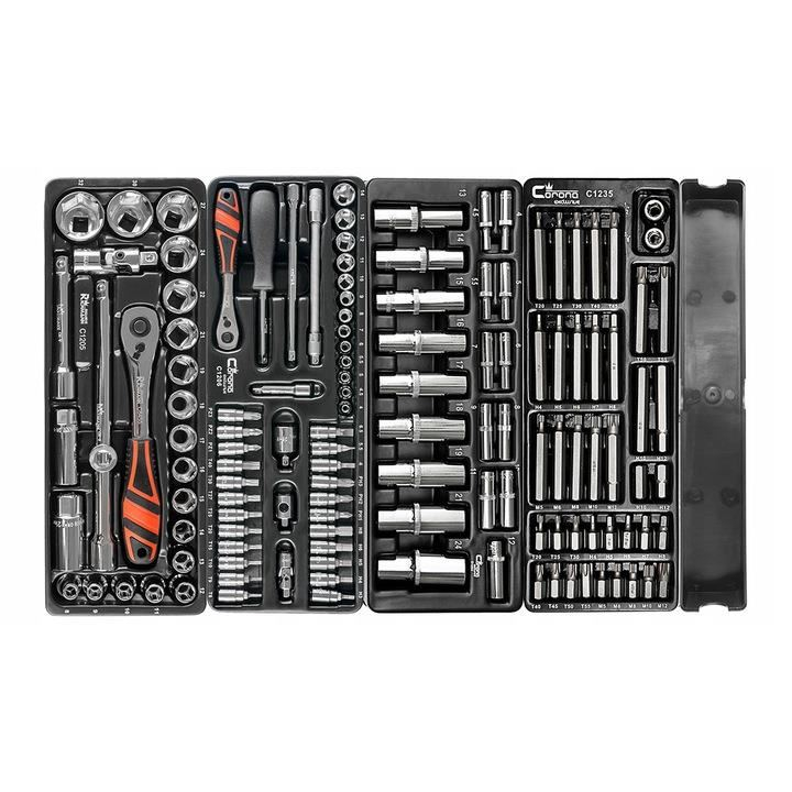 Set capete tubulare lungi, sertar TIP A (385x150 mm) pentru dulap mobil, 1/2", 1/4", 4-24 mm, 20 buc, RICHMANN EXCLUSIVE (C1224)