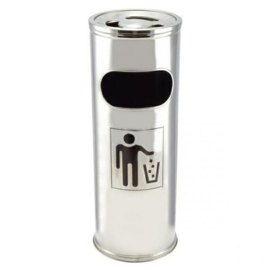 Cos de gunoi din otel inoxidabil cu capac detasabil deasupra.