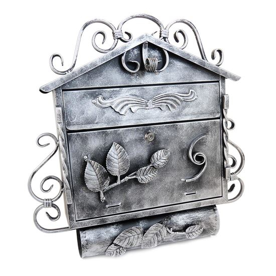 Cutie postala, cu loc pentru ziar, elemente forjate, argintiu, format C4, 52.5x15.5x53 cm, Damech