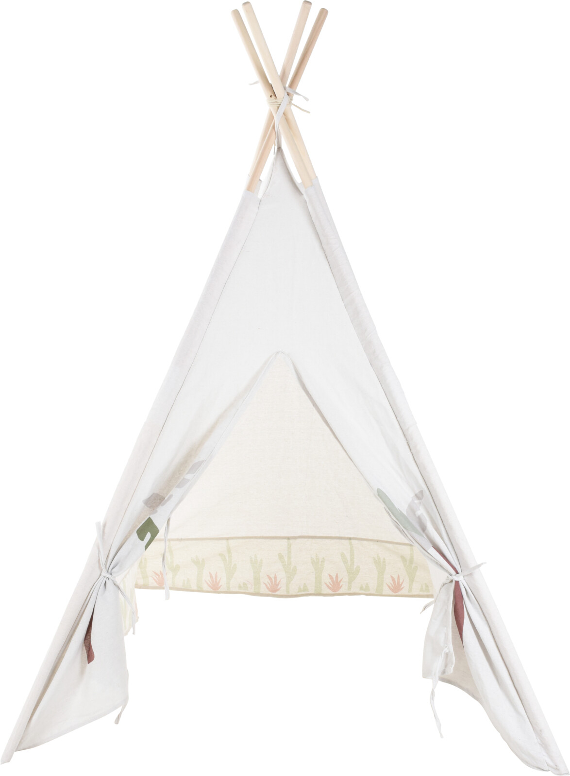 Acest cort Teepee cu un design elegant alb și detalii decorative subtile este perfect pentru a crea un colț de joacă unic și relaxant pentru cei mici. Realizat din materiale de calitate, cortul este ideal pentru joacă, citit sau pur și simplu pentru a crea un spațiu personalizat în camera copilului.
