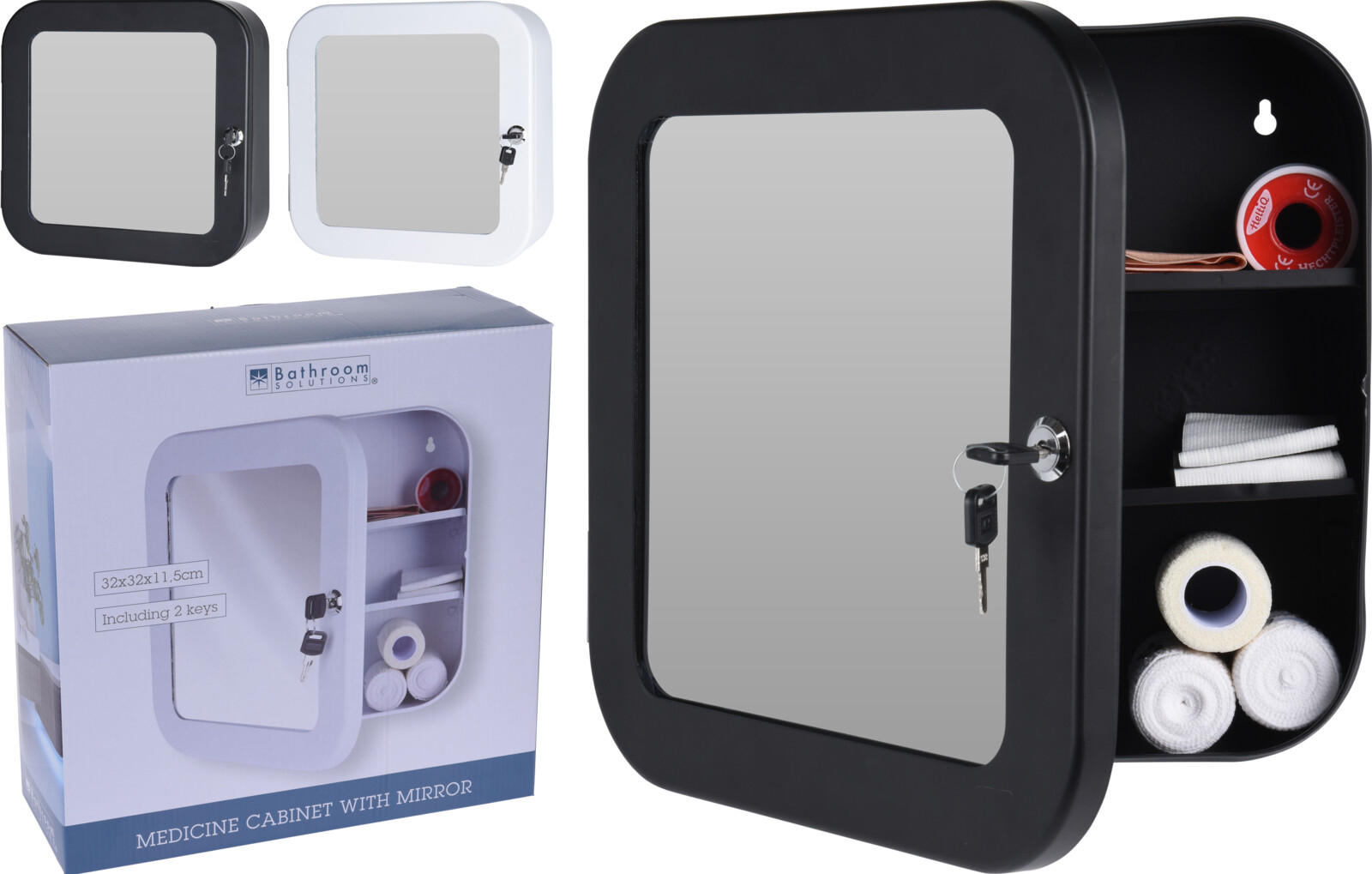 Acest dulap compact are un design modern, cu colțuri rotunjite și este disponibil în culorile alb și negru. Include două chei pentru siguranță și intimitate. Dimensiuni: 32 x 32 x 11.5 cm.