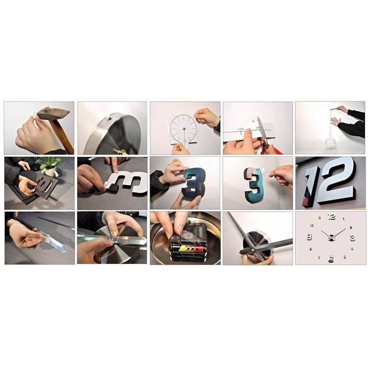 Ceas de perete DIY cu efect de oglinda ofera posibilitatea montarii unui ceas cu diametrul de 60-130 cm.
