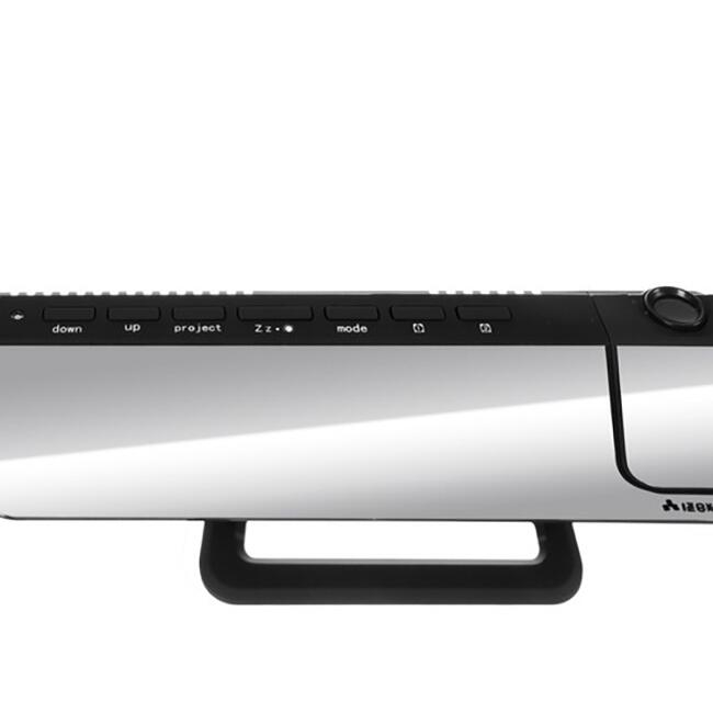 Ceasul este multifunctional si are 4 functii: ceas, ceas cu alarma, oglinda si proiector.