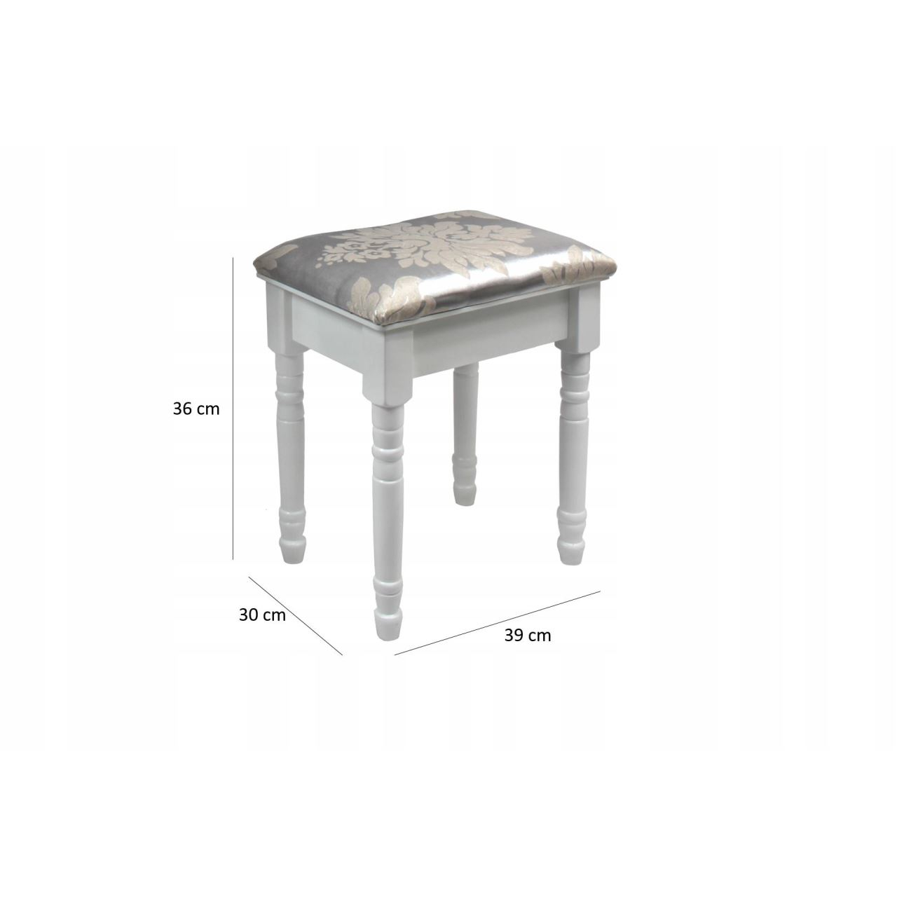 Setul include, de asemenea, un taburet confortabil, tapitat, cu un model floral, care va adauga farmec si eleganta camerei tale.