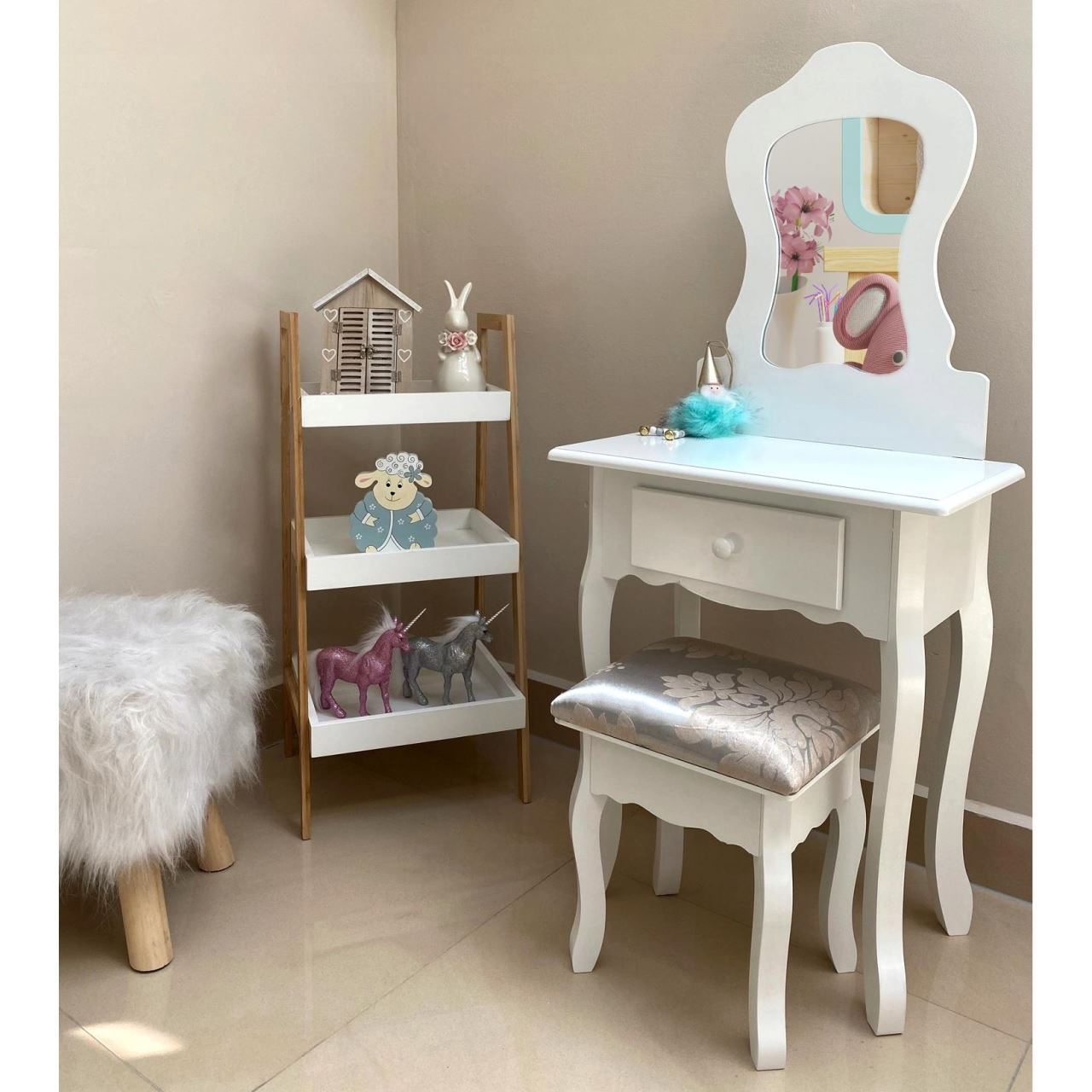 O masuta de toaleta este ideea de cadou perfecta pentru o mica printesa.