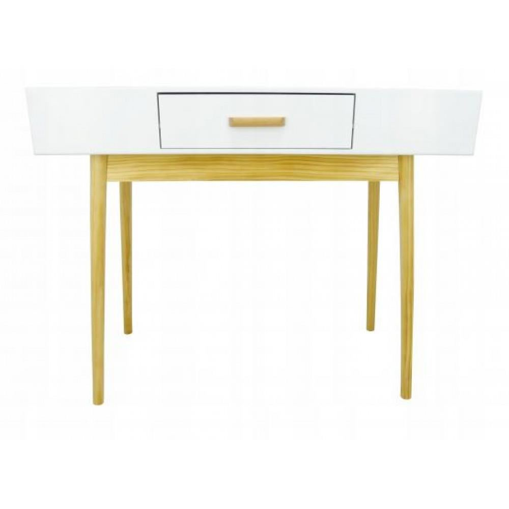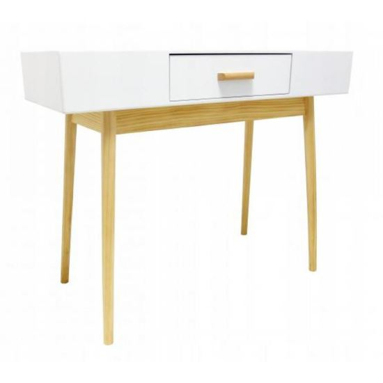 Partea superioara este realizata din tabla de mobilier din MDF, in timp ce picioarele sunt fabricate din lemn.