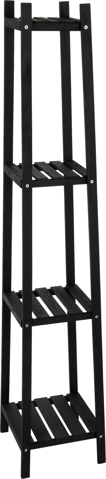 Etajeră din lemn cu 4 niveluri, finisaj negru, perfectă pentru organizarea obiectelor personale și decorarea spațiilor interioare. Aceasta este soluția ideală pentru a economisi spațiu și a adăuga un aspect modern oricărei încăperi din locuință.