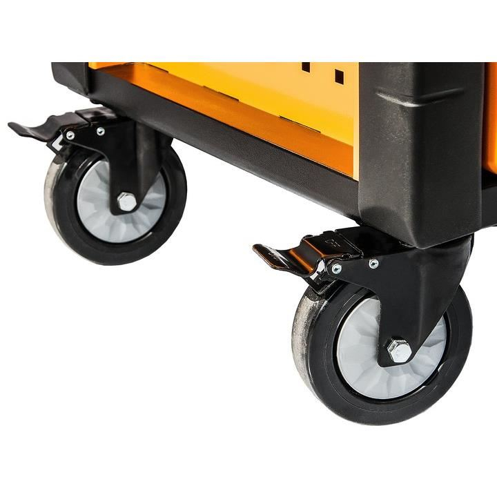 Dulap mobil cu 7 sertare pe ghidaje cu bile, cu blocare centrala cu cheie, inchidere individuala pentru fiecare sertar, colturi de cauciuc si bare de protectie care protejeaza impotriva daunelor accidentale.