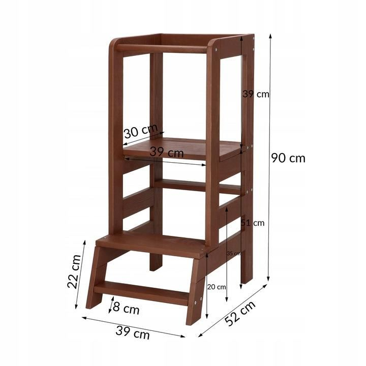 Manopera solida a lemnului de pin, muchiile finisate si platforma stabila asigura siguranta deplina in timpul utilizarii.