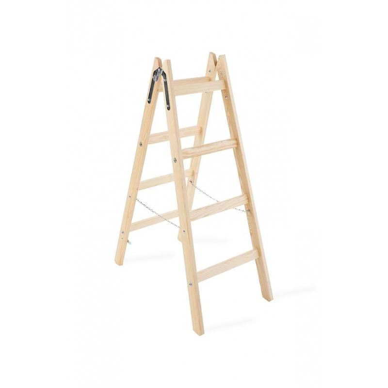 Scara dubla din lemn cu 4 trepte se caracterizeaza printr-o constructie solida si stabila, care garanteaza lucrul sigur la inaltime.