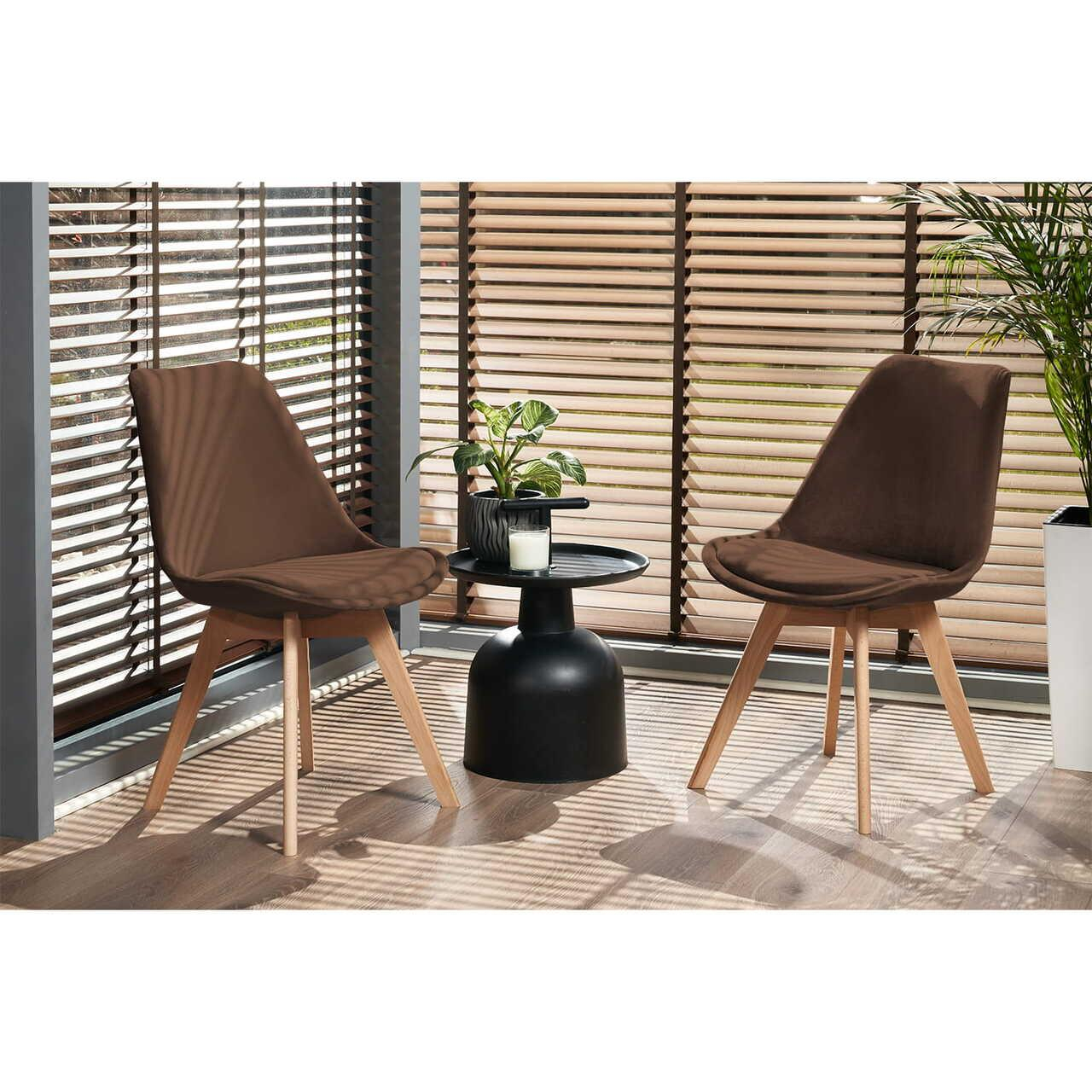 Scaunul model Bari are un spatar perfect conturat, acoperit cu velur, care, combinat cu o perna moale pe sezut, asigura un confort deosebit.