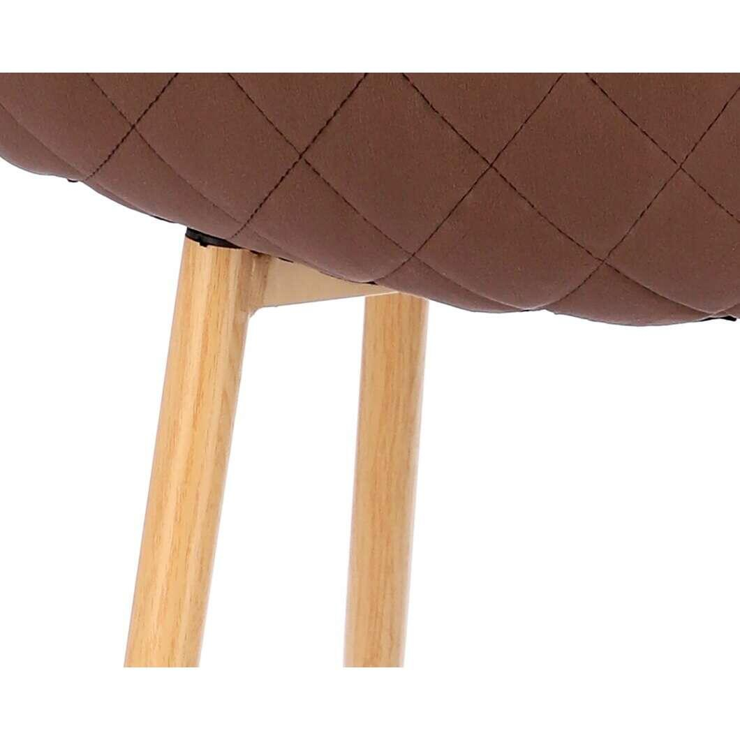 In exterior, exista o matlasare delicata si cusaturi cu fir, iar in interior materialul este neted. Scaunele au spatar rotunjit si picioare metalice cu imitatie de lemn, care creeaza o baza stabila.