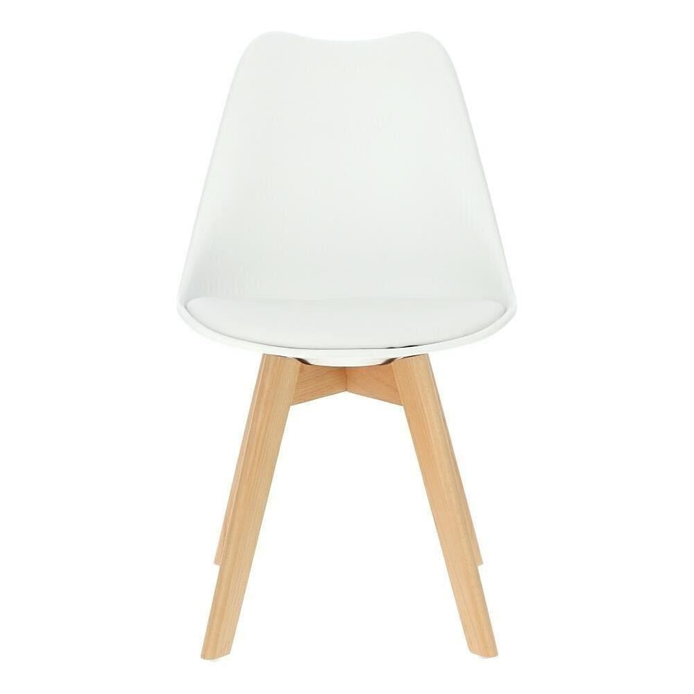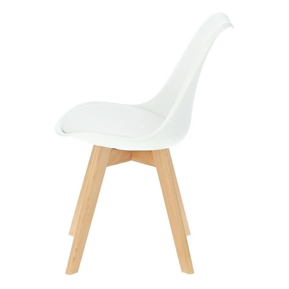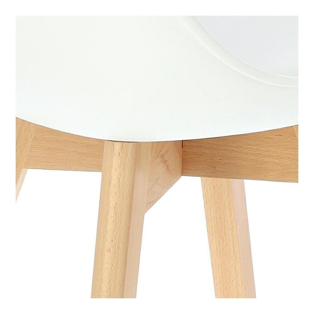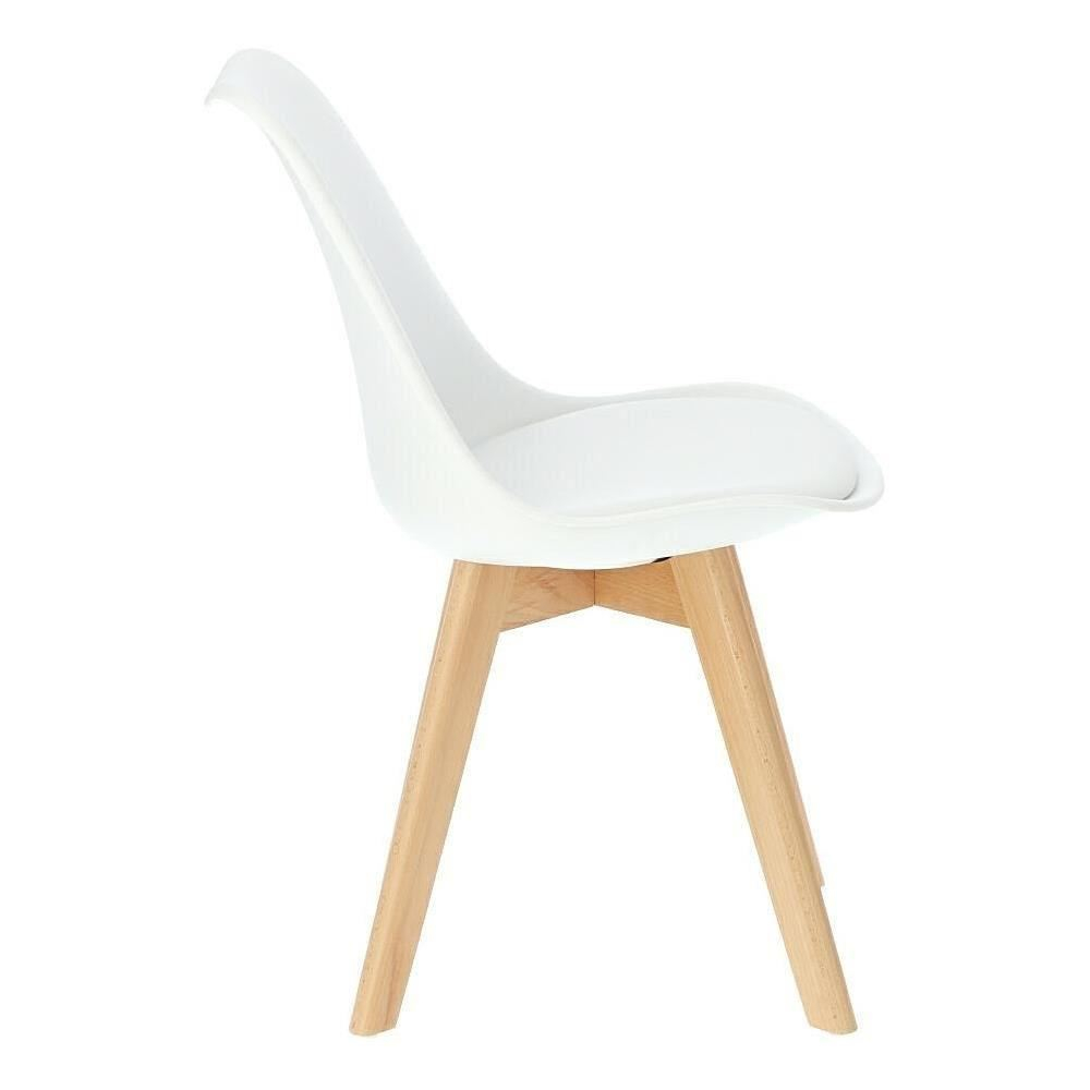 Picioarele din lemn si forma scaunului ofera un aspect retro.