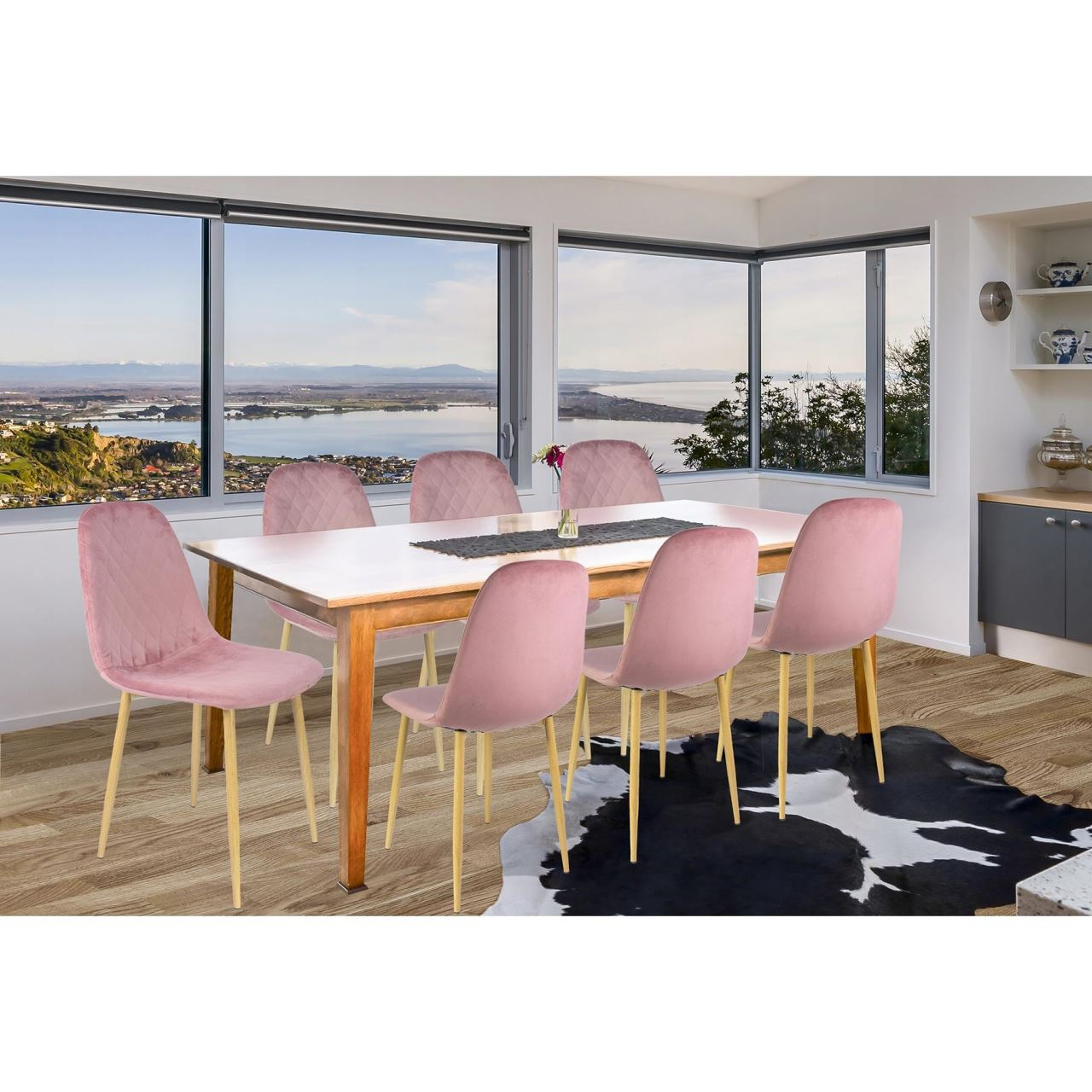 Scaunul VIGO are spatarul si sezutul tapitat cu catifea.