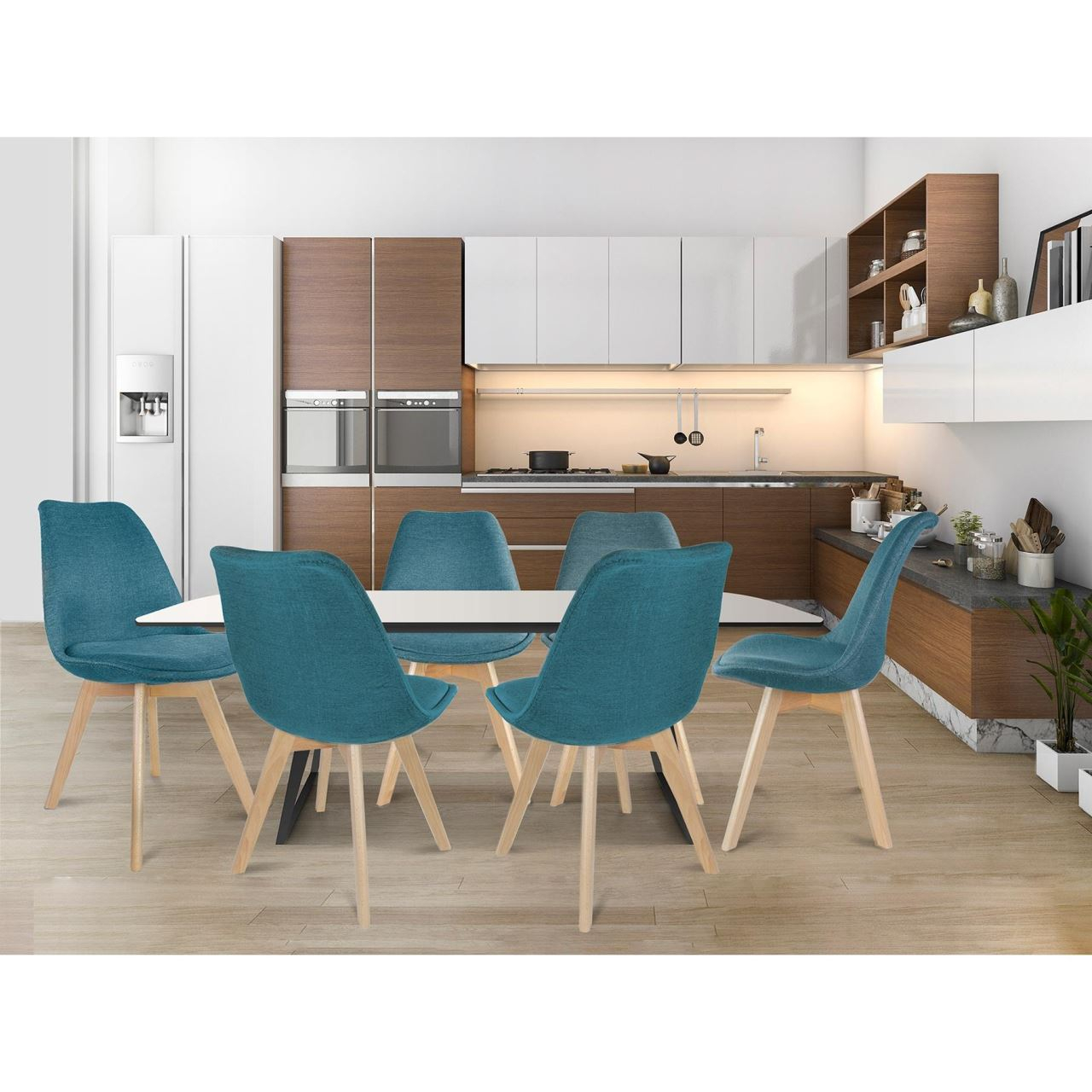 Are un spatar perfect profilat, acoperit cu material textil, care, combinat cu o perna moale asezata pe scaun, ofera un confort deosebit. Picioarele din lemn de fag usor asigura stabilitate si durabilitate. Scaunul este foarte practic si functional.