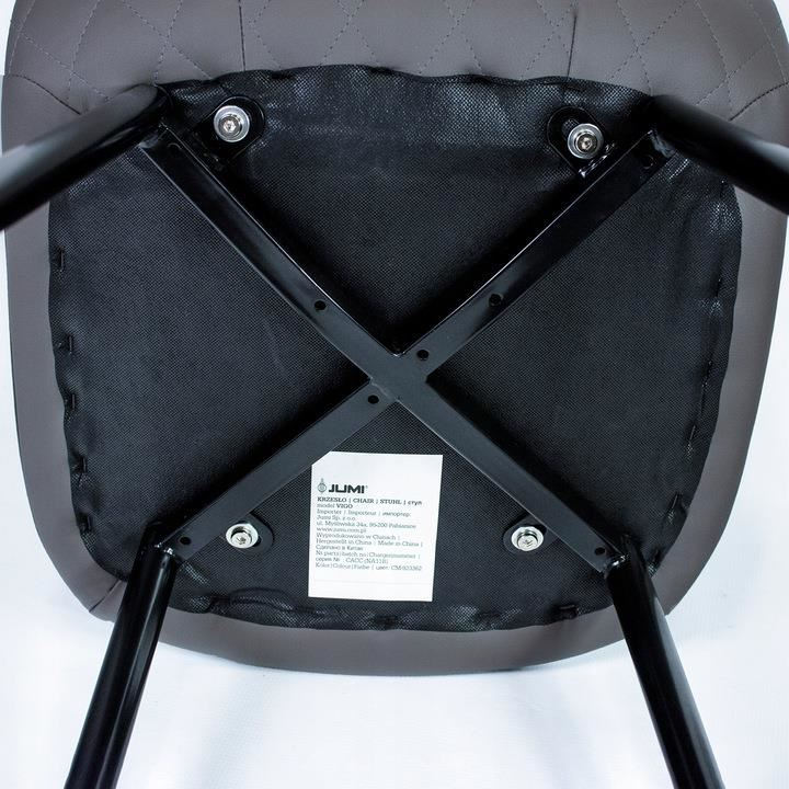 In exterior, exista o matlasare delicata si cusaturi cu fir, iar in interior materialul este neted. Scaunul are spatar rotunjit si picioare metalice care creeaza o baza stabila.