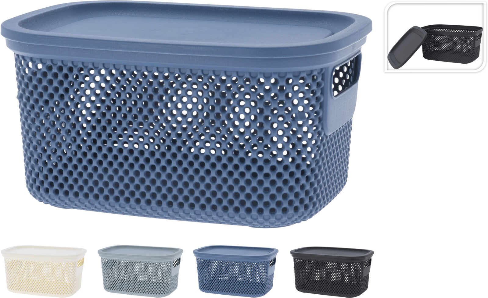 Coșul vine echipat cu un capac robust pentru a proteja conținutul de praf și murdărie, iar mânerele laterale integrate fac transportul ușor și comod. Acest coș se va integra perfect în orice stil de amenajare interioară.