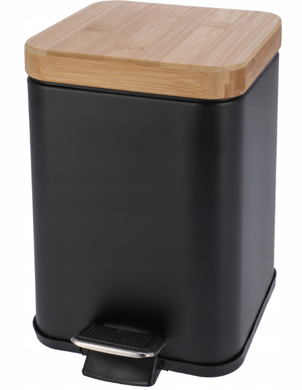 Acest coș de gunoi negru de 3 litri se deschide cu o pedală de picior, ceea ce garantează o mai mare igienă și confort. În plus, are un recipient din plastic detașabil cu un mâner metalic, ceea ce facilitează manipularea sacilor. Închiderea are o funcționare silențioasă și cu atingere moale. Capacul și pedala sunt din bambus.